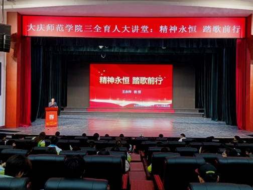 为全面贯彻落实立德树人根本任务,将“三全育人”理念深度融入学生培养全过程,引导青年学子传承红色基因、厚植家国情怀,11月5日下午,“三全育人”大讲堂——《精神永恒 踏歌前行》专题讲座在大学生活动中心温情开讲。全国百名优秀青年文艺家、男高音歌唱家、十佳石油艺术家、黑龙江省首批课程思政教学名师,我校退休教授、校关工委“五老宣讲团”成员王永桦受邀担任主讲人。各学院新生代表参加讲座。