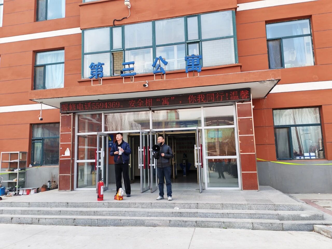 演练模拟学生公寓内突发火情场景。随着警报声响起,公寓管理人员立即启动应急疏散预案,引导学生用湿毛巾捂住口鼻,按照预定的疏散路线,低姿、快速、有序撤离。整个过程指令清晰、响应迅速、配合有序,全体参演学生在规定时间内安全撤离至指定集结区域,演练达到了预期效果。